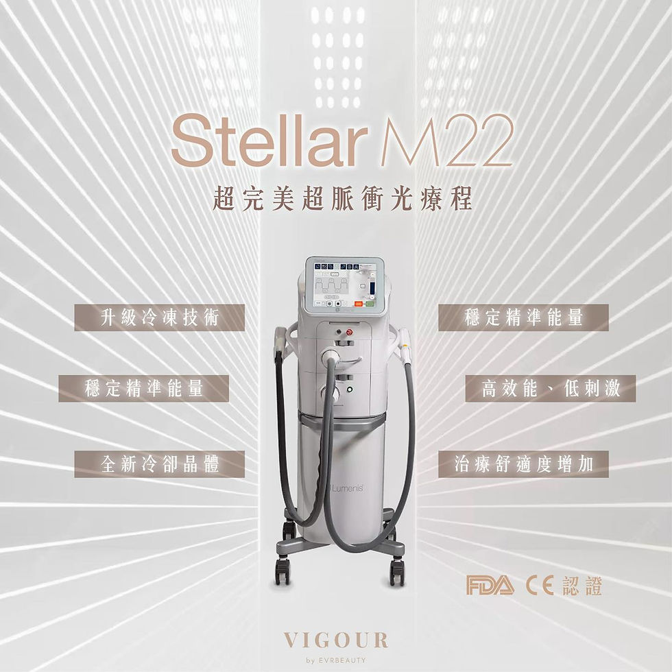 配合最新升級Stellar M22的「Acne痤瘡粉刺濾鏡」和「Vascular血管濾鏡」,有效抑制油脂分泌、消炎消腫、殺滅過量痤瘡桿菌,以及消除多餘微絲血管,消退暗瘡後痘印。獨有「平頂波專利科技」,相比舊款脈衝光能量均勻而高穩定性,提升效能和療程安全性。